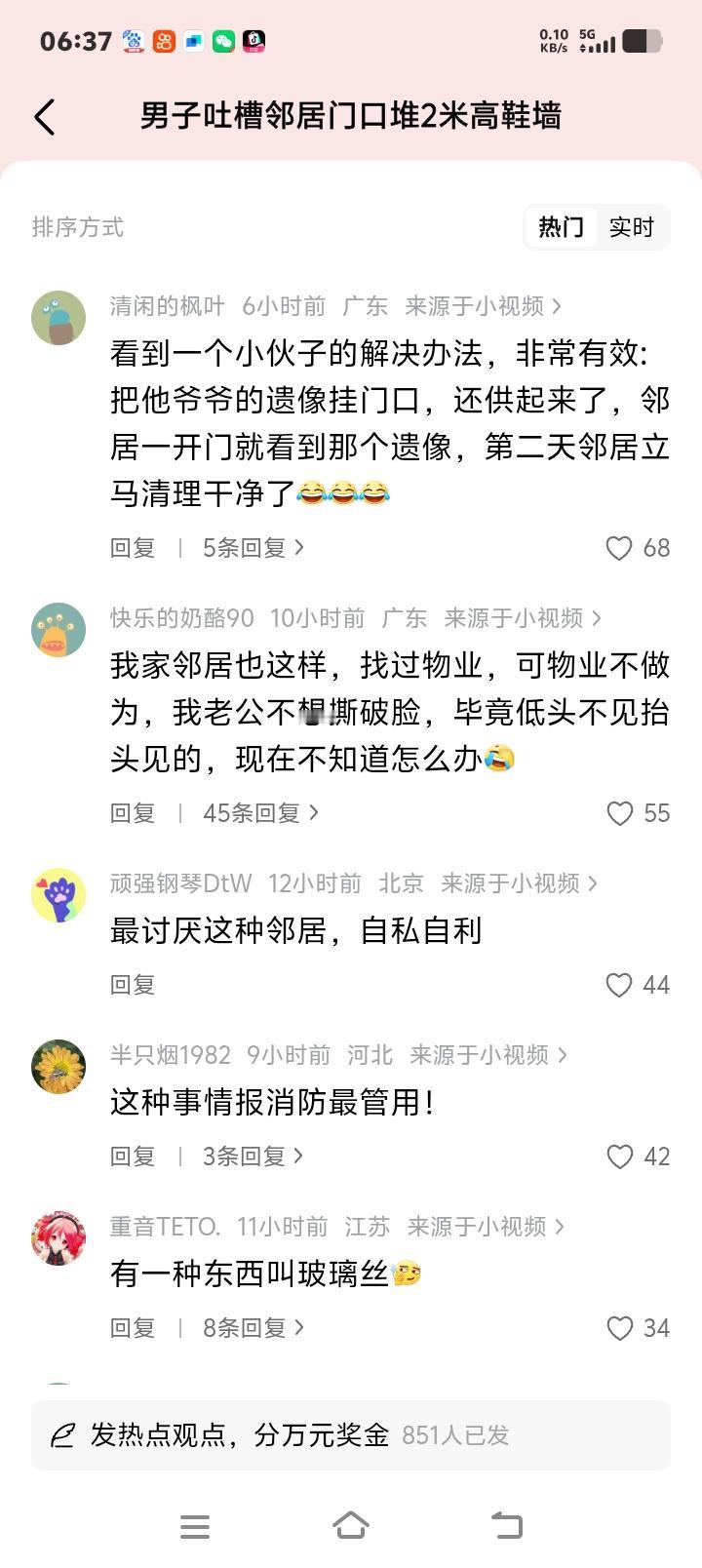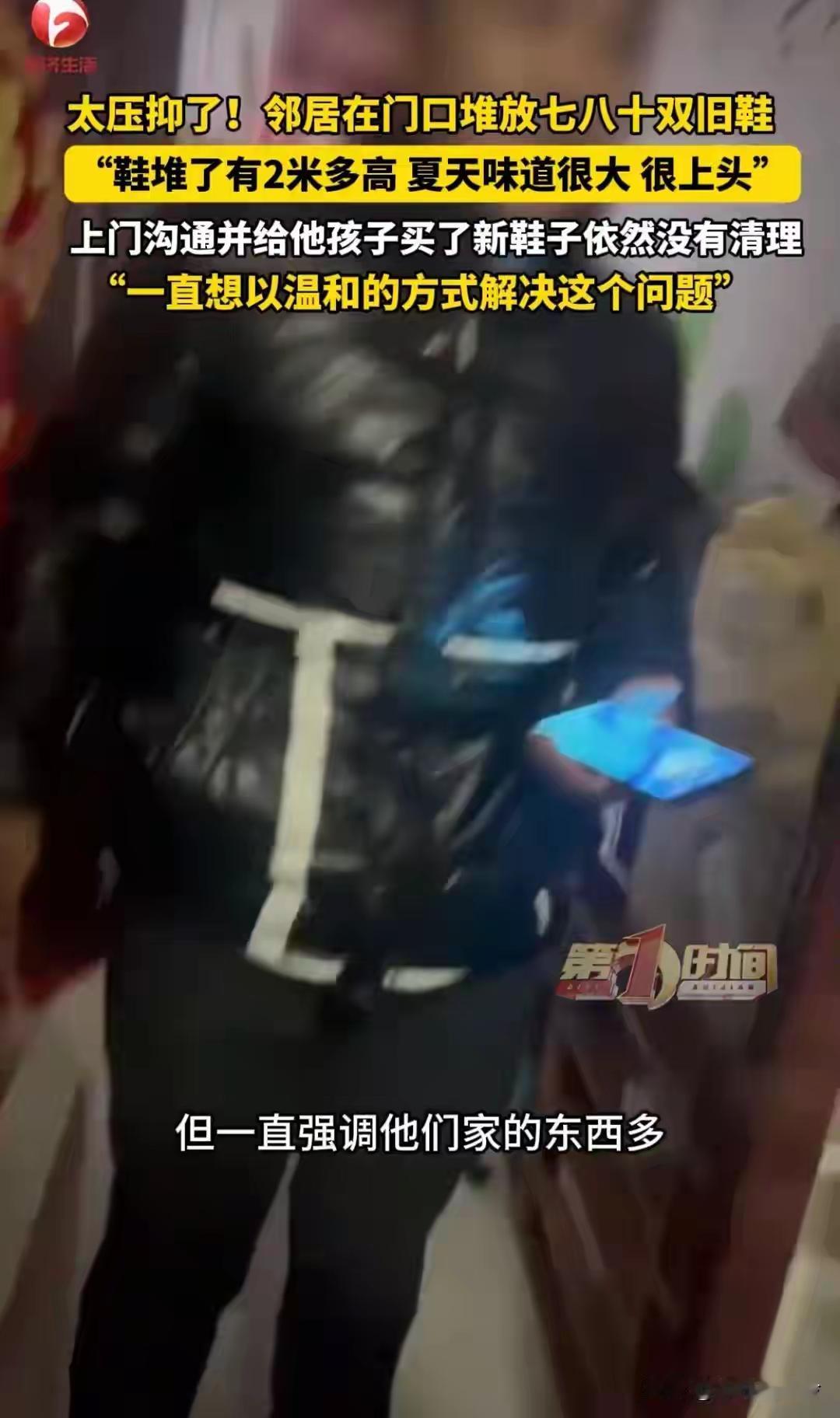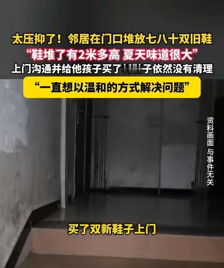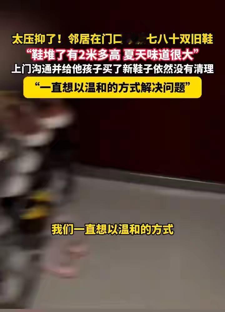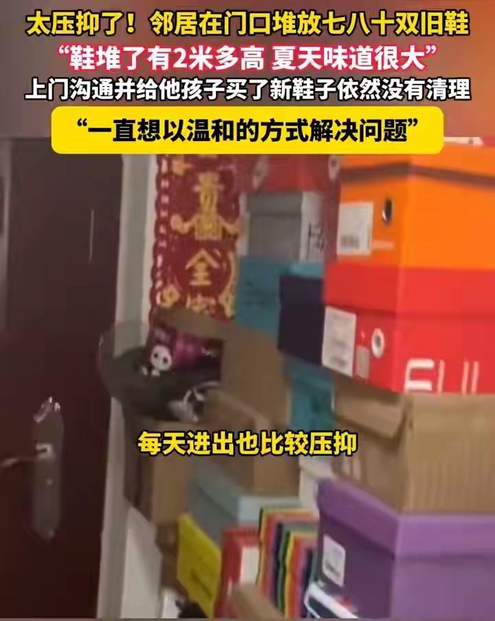 四川崇州惊现“鞋墙堵门”奇观!邻居堆2米高七八十双臭鞋,送礼说情竟无效,网友怒支狠招:挂遗照、倒鲱鱼罐头以毒攻毒! 每天推开家门,扑面而来的不是清晨的阳光,而是一堵由七八十双旧鞋堆成的“鞋墙”。这堵墙高达两米,散发着经年累月的酸腐气味,鞋堆里甚至还塞着未洗的袜子。对四川崇州的这位男子而言,这不仅是视觉上的压抑,更是生活质量的崩塌。他试过温和沟通,甚至给邻居孩子送上新鞋,但对方只是口头答应,转身依旧我行我素。 人性的微妙往往在邻里之间展现得淋漓尽致。当你一次次退让,对方却将宽容视为软弱。这堆鞋墙仿佛一道无声的宣言:你的舒适与我无关。男子说:“一直想以温和的方式解决问题。”可现实告诉他,有些边界,单靠善意永远无法建立。 网友们的评论炸开了锅。有人愤慨:“物业不管吗?这是消防隐患!”有人调侃:“放点鲱鱼罐头汤,以味攻味!”更有人搬出“实战经验”:在门口挂上逝去亲人的遗像,邻居不到三天就默默收走了鞋堆。这些看似极端的建议,背后是无数人对“边界感缺失”的集体共鸣。 我们不得不思考:为什么总有人将公共空间视为私人仓库?楼道是通往家的过渡,却成了自私的试验场。鞋墙背后,暴露的是对他人感受的漠视,以及对规则的无知。当沟通沦为徒劳,法律与道德便成了最后的防线。 事实上,这类事件并非个例。从堆鞋到放杂物,从占车位到噪音扰民,邻里矛盾往往始于得寸进尺。社会学家指出,现代社区中,“距离感”的缺失正加剧人际摩擦。当私人空间被侵占,沉默的大多数往往选择忍耐,直到情绪爆发。 但忍耐真的有用吗?男子的经历给出了答案。他的礼物与礼貌,反而让邻居觉得问题无关紧要。心理学中有个“破窗效应”:一旦放任小恶,环境便会加速恶化。鞋墙若不及时清理,下次可能是旧家具、废纸箱,甚至变成垃圾场。 如何破局?除了网友的“奇招”,更需依靠规则。物业调解、社区介入、消防投诉——这些途径虽慢,却能让对方意识到问题的严重性。必要时,法律武器也能捍卫权益。毕竟,楼道属于公共区域,堆放杂物已涉嫌侵占公共资源与安全隐患。 我们向往的邻里关系,应是“低头见温情”,而非“开门见鞋山”。这件事之所以引发热议,是因为它戳中了城市人的通病:在拥挤中挣扎,在冷漠中渴望温暖。当善意被践踏,我们是否还有勇气捍卫自己的空间? 或许,解决问题的关键不在方法有多“狠”,而在于态度有多坚定。男子若早一步摆明底线,邻居或许不敢肆意妄为。生活中,处处是博弈:你强他弱,你弱他强。唯有守住边界,才能赢得尊重。 最后,让我们回归本质。社区是共同的家园,而非自私的战场。一双鞋、一个微笑、一次体谅,都能让楼道变得更宽敞。愿我们都能用理性建立规则,用善意融化坚冰——因为家的温度,从推开门的瞬间就该感受到。 (来源: 根据四川崇州男子受访内容及网络热议综合整理) 邻里矛盾 公共空间