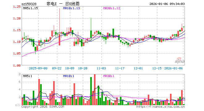 1月6日,家电ETF易方达(159328)开盘涨0.52%,报1.164元。家电ETF易方达(159328)重仓股方面,三花智控开盘跌0.52%,美的集团跌0.13%,海尔智家涨0.15%,格力电器涨0.02%,石头科技涨0.06%,麦格米特跌0.54%,四川长虹跌1.38%,科沃斯涨0.13%,海信视像涨0.00%,兆驰股份涨0.41%。