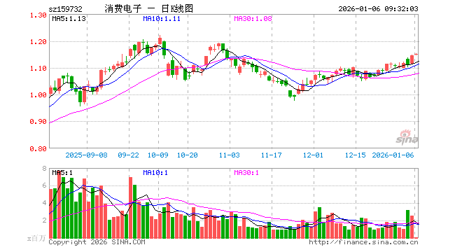 1月6日,消费电子ETF(159732)开盘涨0.52%,报1.150元。消费电子ETF(159732)重仓股方面,立讯精密开盘涨0.56%,胜宏科技跌1.33%,京东方A涨0.24%,兆易创新涨0.98%,豪威集团涨0.11%,歌尔股份涨0.85%,东山精密跌1.72%,TCL科技涨1.98%,蓝思科技涨2.25%,长电科技涨0.63%。