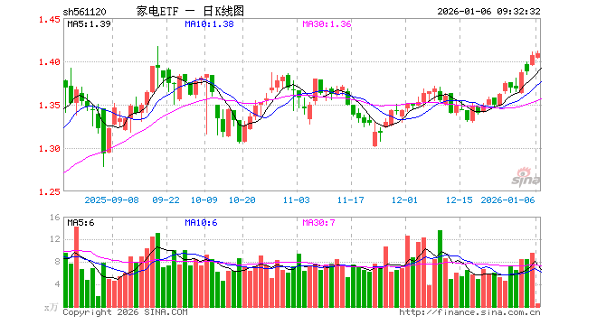 1月6日,家电ETF(561120)开盘跌0.21%,报1.404元。家电ETF(561120)重仓股方面,美的集团开盘跌0.13%,三花智控跌0.52%,格力电器涨0.02%,海尔智家涨0.15%,石头科技涨0.06%,四川长虹跌1.38%,麦格米特跌0.54%,科沃斯涨0.13%,海信视像涨0.00%,兆驰股份涨0.41%。