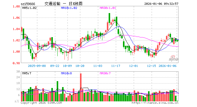 1月6日,交通运输ETF(159666)开盘涨0.20%,报1.020元。交通运输ETF(159666)重仓股方面,京沪高铁开盘涨0.19%,顺丰控股涨0.21%,中远海控涨0.13%,大秦铁路涨0.00%,上海机场涨0.03%,中国东航跌1.16%,南方航空跌0.87%,圆通速递涨0.18%,中国国航跌0.33%,招商轮船跌0.67%。