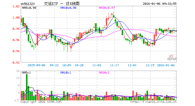 1月6日,交运ETF(561320)开盘跌0.10%,报0.975元。交运ETF(561320)重仓股方面,京沪高铁开盘涨0.19%,顺丰控股涨0.21%,中远海控涨0.13%,大秦铁路涨0.00%,上海机场涨0.03%,中国东航跌1.16%,南方航空跌0.87%,圆通速递涨0.18%,中国国航跌0.33%,招商轮船跌0.67%。