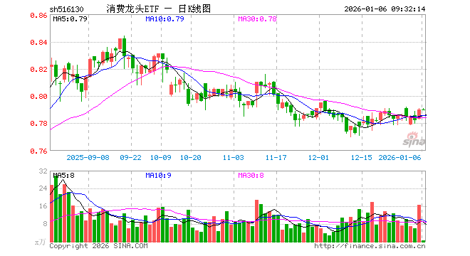 1月6日,消费龙头ETF(516130)开盘涨0.00%,报0.790元。消费龙头ETF(516130)重仓股方面,贵州茅台开盘涨0.46%,格力电器涨0.02%,伊利股份跌0.21%,牧原股份跌0.54%,赛力斯涨0.03%,福耀玻璃跌0.16%,温氏股份涨0.24%,山西汾酒涨0.29%,海尔智家涨0.15%,分众传媒涨0.00%。