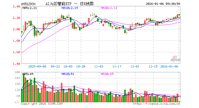 AI人工智能ETF(512930)业绩比较基准为中证人工智能主题指数收益率,管理人为平安基金管理有限公司,基金经理为刘洁倩,成立(2019-07-12)以来回报为161.27%,近一个月回报为8.19%。