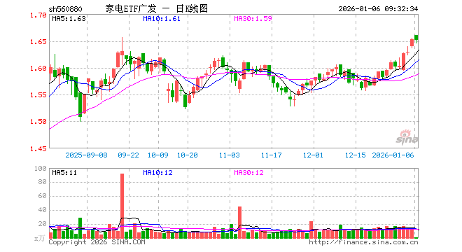 家电ETF广发(560880)业绩比较基准为中证全指家用电器指数收益率,管理人为广发基金管理有限公司,基金经理为陆志明,成立(2022-03-30)以来回报为65.08%,近一个月回报为3.39%。