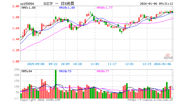1月6日,5GETF(159994)开盘跌0.16%,报1.906元。5GETF(159994)重仓股方面,新易盛开盘跌3.90%,中际旭创跌2.81%,立讯精密涨0.56%,工业富联涨0.00%,中兴通讯涨0.13%,兆易创新涨0.98%,沪电股份跌1.25%,华工科技跌0.52%,歌尔股份涨0.85%,东山精密跌1.72%。