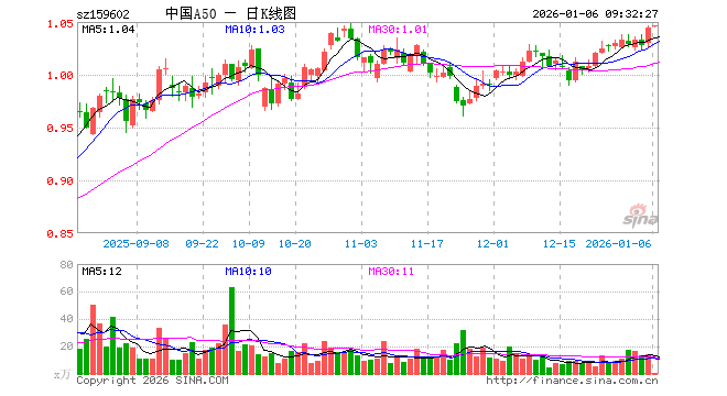 1月6日,中国A50ETF(159602)开盘涨0.10%,报1.045元。中国A50ETF(159602)重仓股方面,宁德时代开盘涨0.66%,紫金矿业涨1.69%,工业富联涨0.00%,贵州茅台涨0.46%,海光信息跌0.80%,寒武纪跌0.72%,比亚迪涨0.11%,恒瑞医药涨0.44%,立讯精密涨0.56%,中际旭创跌2.81%。