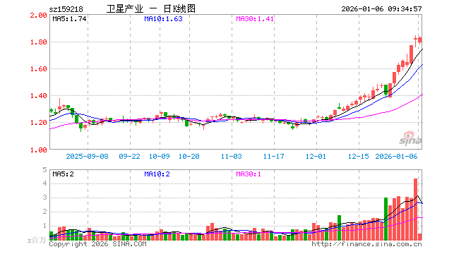 1月6日,卫星产业ETF(159218)开盘跌1.70%,报1.789元。卫星产业ETF(159218)重仓股方面,航天电子开盘跌2.07%,中国卫星跌2.57%,华测导航跌0.47%,中国卫通涨1.73%,中科星图跌0.89%,北方导航跌2.01%,北斗星通涨0.02%,四维图新涨0.32%,臻镭科技跌1.89%,新雷能涨0.03%。