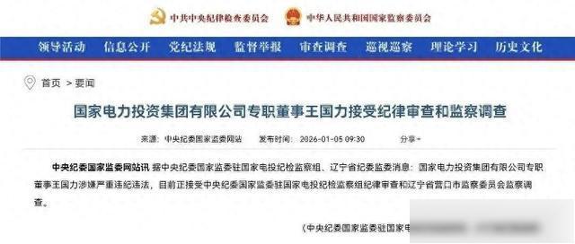 据中央纪委国家监委驻国家电投纪检监察组、辽宁省纪委监委消息:国家电力投资集团有限公司专职董事王国力涉嫌严重违纪违法,目前正接受中央纪委国家监委驻国家电投纪检监察组纪律审查和辽宁省营口市监察委员会监察调查。