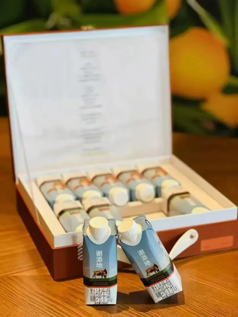 从品牌定位来看,谢添地主打高端常温白奶。据悉,谢添地最初共推出了两款常温奶产品,其中核心产品为4.3g蛋白的黑土娟姗奶,单盒定价12.8元,主打“黑金奶源带”标签;另一款产品黑土A2纯牛奶的单盒定价为7.8元。两款产品单盒的价格远远高于当时市面上伊利、蒙牛等主流品牌旗下的高端常温白奶产品。
