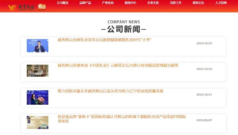 资料显示,辉山乳业曾是东北地区最大的奶牛养殖企业,拥有近50万亩苜蓿草及辅助饲料种植基地、年产50万吨奶牛专用精饲料加工厂、超过20万头纯种进口奶牛、82座规模化自营牧场以及6座现代化乳品加工生产基地。2019年12月,因资金链断裂债务危机,辉山乳业正式在港交所摘牌退市。2020年,越秀集团重组并购了辉山乳业,并于2021年成立新公司越秀辉山,并一度传出上市计划。