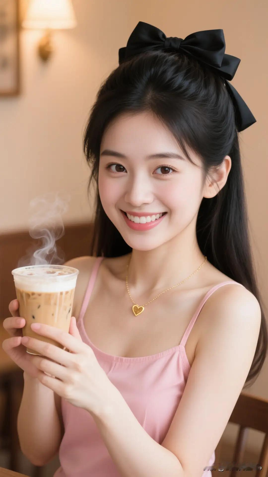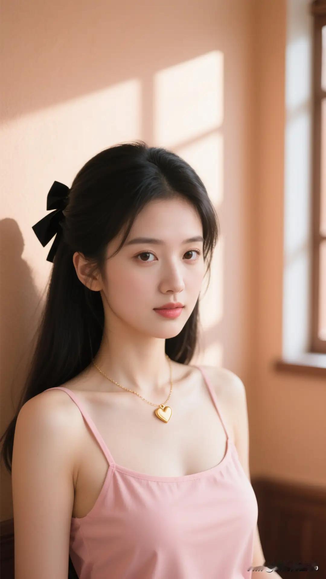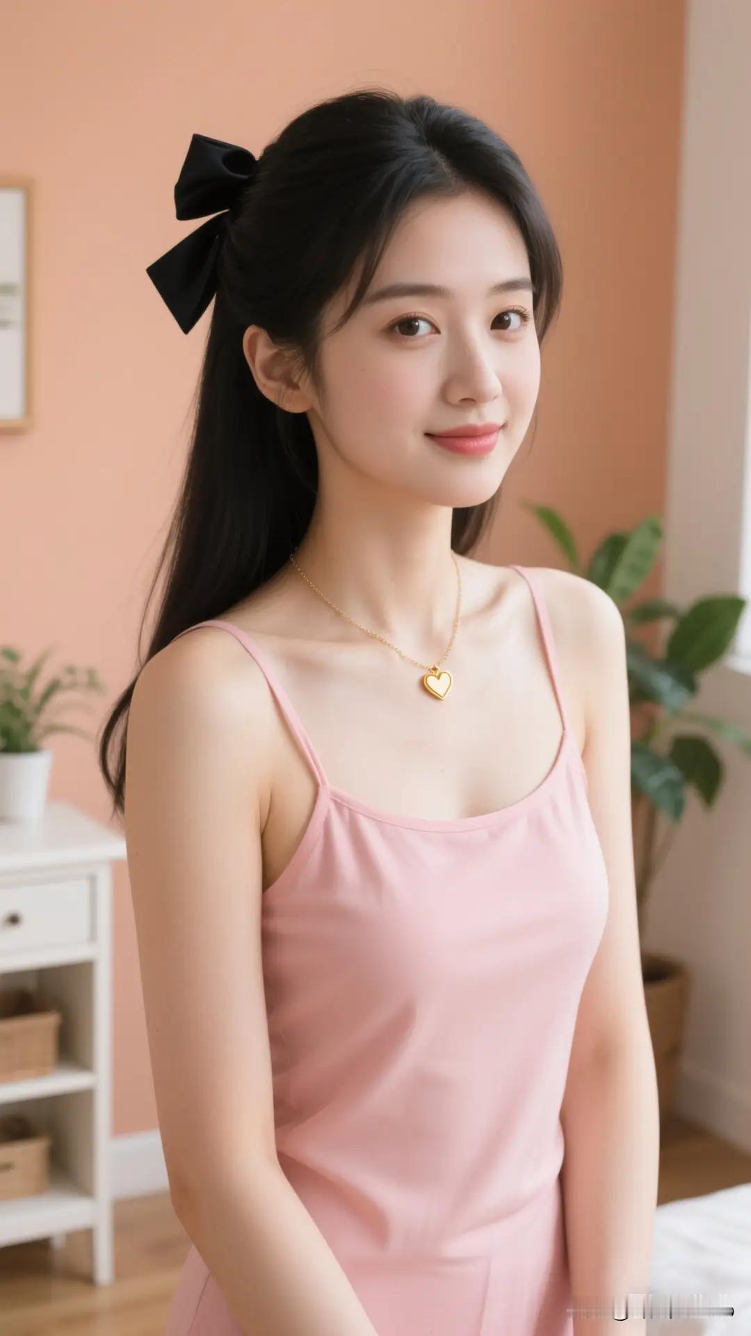 穿粉色裙子的女孩在拍写真,这微笑能迷倒一片,眯眼动作更是一绝,比心举动看着我心都