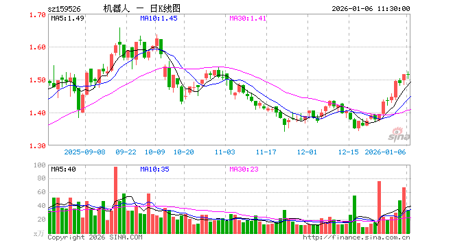 1月6日,截止午间收盘,机器人ETF嘉实(159526)涨0.07%,报1.516元,成交额4961.98万元。机器人ETF嘉实(159526)重仓股方面,汇川技术截止午盘跌0.14%,科大讯飞涨0.00%,石头科技涨2.57%,大华股份涨0.42%,中控技术涨0.06%,大族激光跌0.96%,双环传动跌1.49%,科沃斯涨0.10%,机器人跌0.70%,云天励飞涨0.54%。