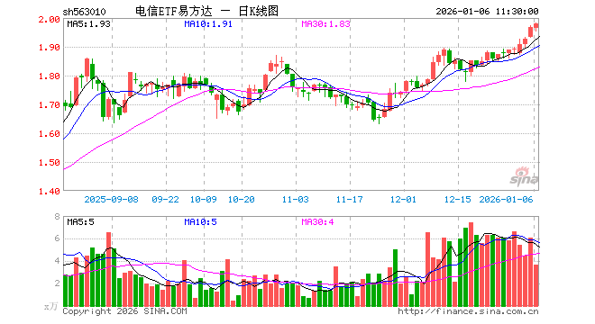 1月6日,截止午间收盘,电信ETF易方达(563010)涨0.71%,报1.980元,成交额729.93万元。电信ETF易方达(563010)重仓股方面,新易盛截止午盘跌2.91%,中际旭创跌3.53%,中国联通涨0.58%,中国移动跌0.07%,中国电信跌0.32%,银之杰涨3.02%,中国卫通涨8.02%,中兴通讯涨1.36%,天孚通信跌1.83%,紫光股份涨0.40%。