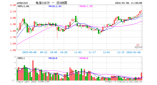 1月6日,截止午间收盘,电信50ETF(560300)涨0.43%,报2.108元,成交额546.01万元。电信50ETF(560300)重仓股方面,新易盛截止午盘跌2.91%,中际旭创跌3.53%,中国联通涨0.58%,中国移动跌0.07%,中国电信跌0.32%,银之杰涨3.02%,中国卫通涨8.02%,中兴通讯涨1.36%,天孚通信跌1.83%,紫光股份涨0.40%。