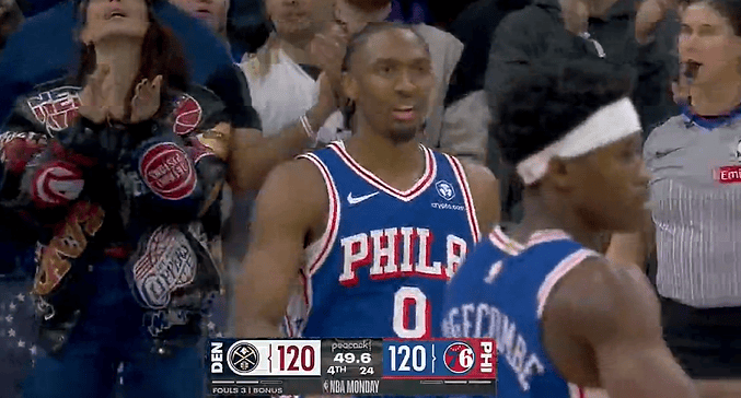 比赛第四节,埃奇库姆命中三分+马克西反击上进,76人最后49秒扳平比分。