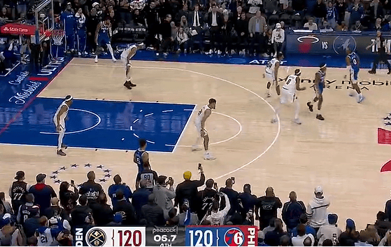 马克西运球踉跄+仓促出手三分绝杀未果,双方进入加时赛
