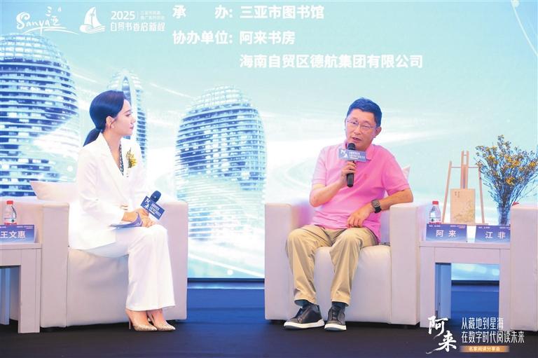 近日,由市旅文局指导、市公共文化中心主办、市图书馆承办的“自贸书香启新程”名家阅读分享会特邀著名作家、茅盾文学奖得主、中国作家协会副主席阿来,以“在数字时代阅读未来”为主题,与海南本土诗人、省作协副主席江非在三亚展开深度对话,吸引500余名文学爱好者、科技从业者、高校师生及市民读者到现场积极参与。活动直播参与人数超12万人次。