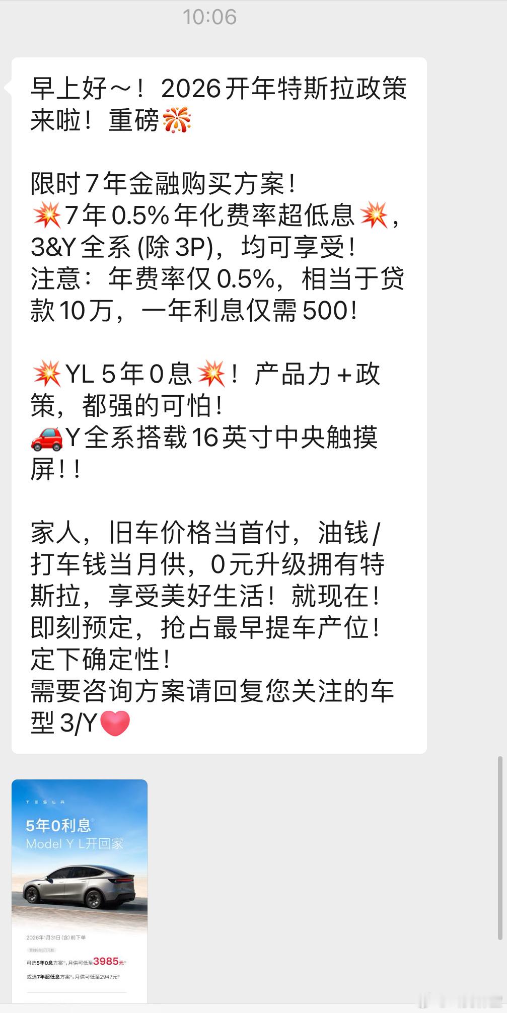 特斯拉 很早之前加了个特斯拉的销售,优惠政策必须得发两遍