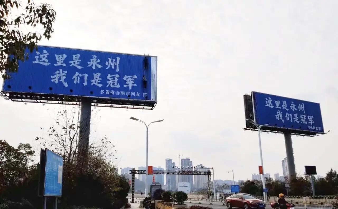 苏州又成功激起了江苏十三太保的好胜心。 湘超大爆冷门,永州获得冠军。苏州的一位老板很激动,在湖南永州的的一座大桥旁立了一块广告牌“这里是永州,我们是冠军”落款是苏州网友贺。 南京网友一看这怎么又给苏州占了先,必须马上在苏州牌子的对面再立一块牌子,于是大桥对面就有了“这里是永州,我们是冠军”落款是多省省会南京网友贺的广告牌。 泰州网友一看,这词不是抄我的吗?我苏超冠军怎么也得有所表示,又立了一块广告牌牌“湘超冠军城,永州欢迎你”落款是苏超冠军泰州球迷贺。 估计现在常州是肠子都要悔青了,这一个个的,怎么都跑我前面去了。其他太保也坐不住了,留给他们的广告牌位置已经不多了。太保下面的反骨仔县级市也准备参与进去,昆山网友说准备单开一页,在宋家州大桥,连夜加立十二个广告牌,怎么都要把前面的比下去。这就好笑了,内斗大省斗到省外去了。不好意思,我们江苏又让大家看笑话啦!