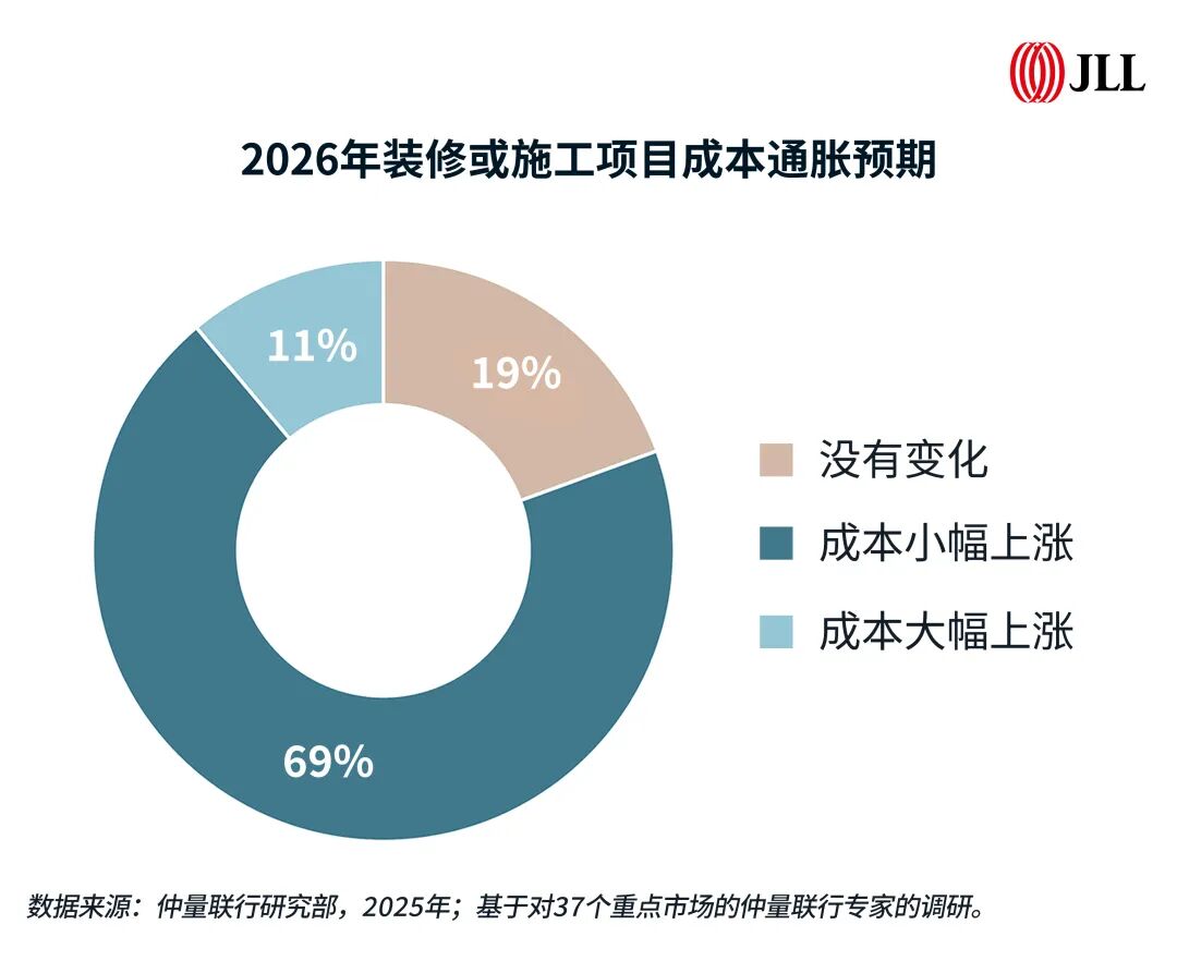 全球范围内,建筑原材料、劳动力及融资成本持续高企,迫使全行业进行战略性的成本重构。仲量联行调研显示,72%的企业房地产负责人将“成本控制与预算效率”列为2026年的首要任务。应对之道在于主动管理,企业应聚焦三大方向:预算精细化审核、空间利用率优化、运营流程数字化。