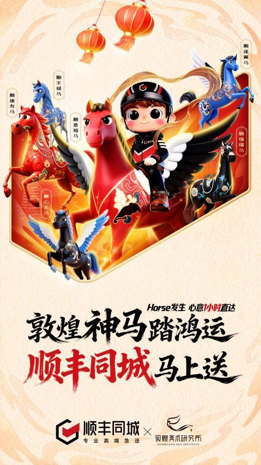 与此同时,顺丰同城于新年之际携手敦煌美术研究所六匹神马IP设计,以“2026年好运‘加马’”为寓意,为节日服务注入祥瑞内涵。