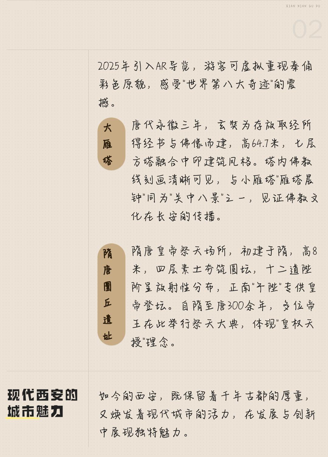 唐诗之都西安太全面了 去过西安这么多次,每次走过熟悉的街道,还是会被这座城市的历史感打动。十三朝古都的底蕴,就藏在每条老街巷里。西安古都,千年古都的现代魅力全解析,喜欢的建议点赞收藏。