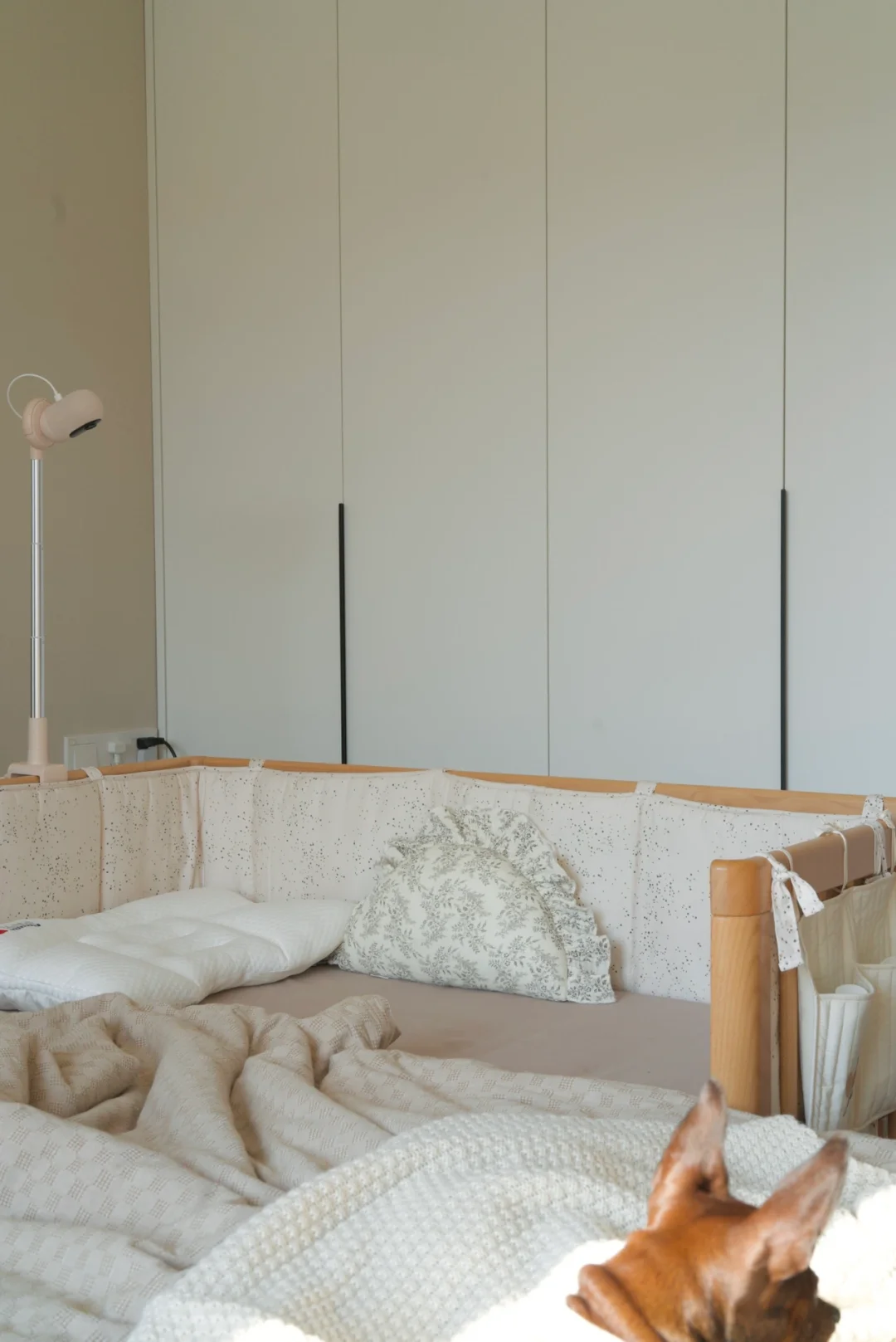 周末陪着宝宝午睡, 阳光洒进房间,忍不住拿起相机记录这一刻。 幸福的形状—— 就是在我们小小的房间,多了一个小小的你, 和我们一起共享的、放大了十倍的晨昏和夜晚。 两人居的主卧多了一个角落, 稍显拥挤, 却是让空间生长出了包容生命的温度, 我精心挑选了和房间搭配的床品, 希望这份柔软能守护每一次你的梦香。 而我们俩那些困倦和幸福反复交织的夜晚, 以后终究会成为最珍贵的回忆吧~