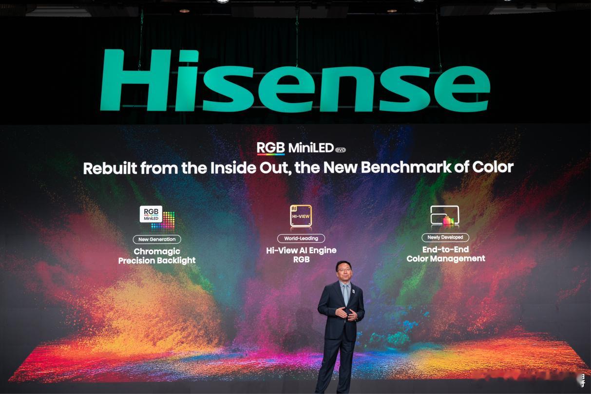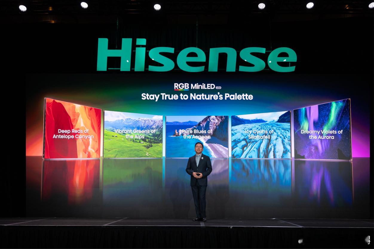 在CES 2026上,海信发布了全新一代RGB-Mini LED显示技术,其核心在于三大系统性进化:1. 光源进化:全球首创“玲珑4芯真彩背光”,在红绿蓝基础上加入天青色芯片,将色域推至110% BT.2020的行业新高度,并解决了串色等行业难题。2. 芯片进化:自研信芯AI画质芯片H7,将光色同控精度提升至134bits,实现全亮度下的高色域表现,攻克了OLED与QD-Mini LED在特定亮度下的色彩短板。3. 系统进化:构建全链路色彩管理系统,确保从信号源到屏幕的色彩精准还原。凭借此技术,海信不仅实现了画质跃升(有害蓝光降低最高达75%),更奠定了市场领导地位。其2025年推出的产品已占据国内该赛道近90%份额,引领行业从参数竞赛转向真实色彩还原的竞争。海信此次迭代,远不止于技术参数的提升,更是一场对高端显示技术路线的重新定义与格局重塑。首先,它完成了从“单点突破”到“系统颠覆”的跨越。行业过往的竞争往往聚焦于背光分区数或峰值亮度等单一维度。海信则以“全链路”思维,同步攻克了光源、控光和色彩管理三大核心环节。玲珑4芯架构是物理基础的革命性拓宽,而超高精度芯片与专业色彩管理则是释放其潜能的“大脑”与“神经”。这种系统能力构筑了极高的技术壁垒。其次,它精准切中了高端消费的核心诉求:极致真实与健康舒适。技术进化直接服务于“还原肉眼所见”的体验目标,并通过大幅降低有害蓝光和能耗,将顶级画质与视觉健康、环保节能结合。这回应了当下消费者从“看得清”到“看得真、看得久”的深层需求转变。最终,海信凭借“定义标准、快速迭代、全面布局”的策略,正在掌握行业主导权。它率先定义并量产了真正的RGB-Mini LED,随后以惊人的速度迭代至四色架构,并迅速完成全尺寸旗舰产品覆盖,将技术概念转化为市场爆款。这使其从技术开创者转变为市场与标准的引领者,正推动全球高端显示市场竞争从“追随”进入“海信节奏”。海信世界杯定制产品亮相CES海信CES2026海信CES发布全新一代RGB-MiniLED高端电视就选海信RGB-MiniLED