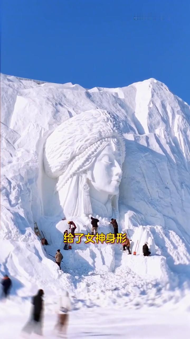 娱乐小哪吒。 东北这波真的杀疯了,这下不只有冰雪大世界了,长春也整了个冰雪新天地。看到长春冰雪新天地雕的雪山女神,刚雕成的时候这尊雪山女神就足够惊艳。皑皑白雪雕琢的身姿在东北凛冽的寒风里立着,洁白得晃眼,圣洁感直接拉满,可始终少了一丝神韵。能想到大自然才是最好的艺术家,而这丝神韵却随着东北罕见的冬日回温突袭长春。 淅淅沥沥的小雨裹着微凉落下,竟给这尊冰雕来了场"神来之笔"的改造。雨幕织成轻纱,盖在女神脸上的素布被风轻轻一吹,边角翻飞,半遮半掩的容颜瞬间有了"犹抱琵琶半遮面"的意境。雨丝打在冰雕上,雾气氤氲间,圣洁里多了几分温柔,连呼吸感都藏不住了。 等雨停布撤,经历过雨水的雪山女神像是被大自然赋予了肌肤纹理,给人一种我一直都在倾听人间夙愿的感觉。腊月的雪给了女神身形,而这场不期而遇的冬雨才真正赋予了她灵魂。现在的雪山女神就静静立在那儿,温柔又有力量,让世人都能看到雪山女神的真容。 那些被雨水冲刷出的斑驳痕迹哪儿是什么残缺,分明是东北大地的印记。就像生长在黑土地上的东北人,扛过刺骨寒风,熬过自然灾害,闯过时代变迁,唯一没变的是他们心里那团永不熄灭的火焰。 这波东北我先冲为敬,不只为哈尔滨的冰雕城堡,更要去长春见一见这尊被大自然偏爱的雪山女神,把东北的冬日浪漫一次集齐。