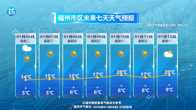 7日至9日,福州市将转为多云到晴天气,气温逐步回升,昼夜温差显著增大。预计10日(周六)市区最高气温有望升至20℃左右,但夜间和早晨气温仍较低,市民需注意添衣保暖,防范感冒。不过,沿海风力仍较大,6日夜里南部沿海阵风可达6~7级,海上航行和作业需注意安全。