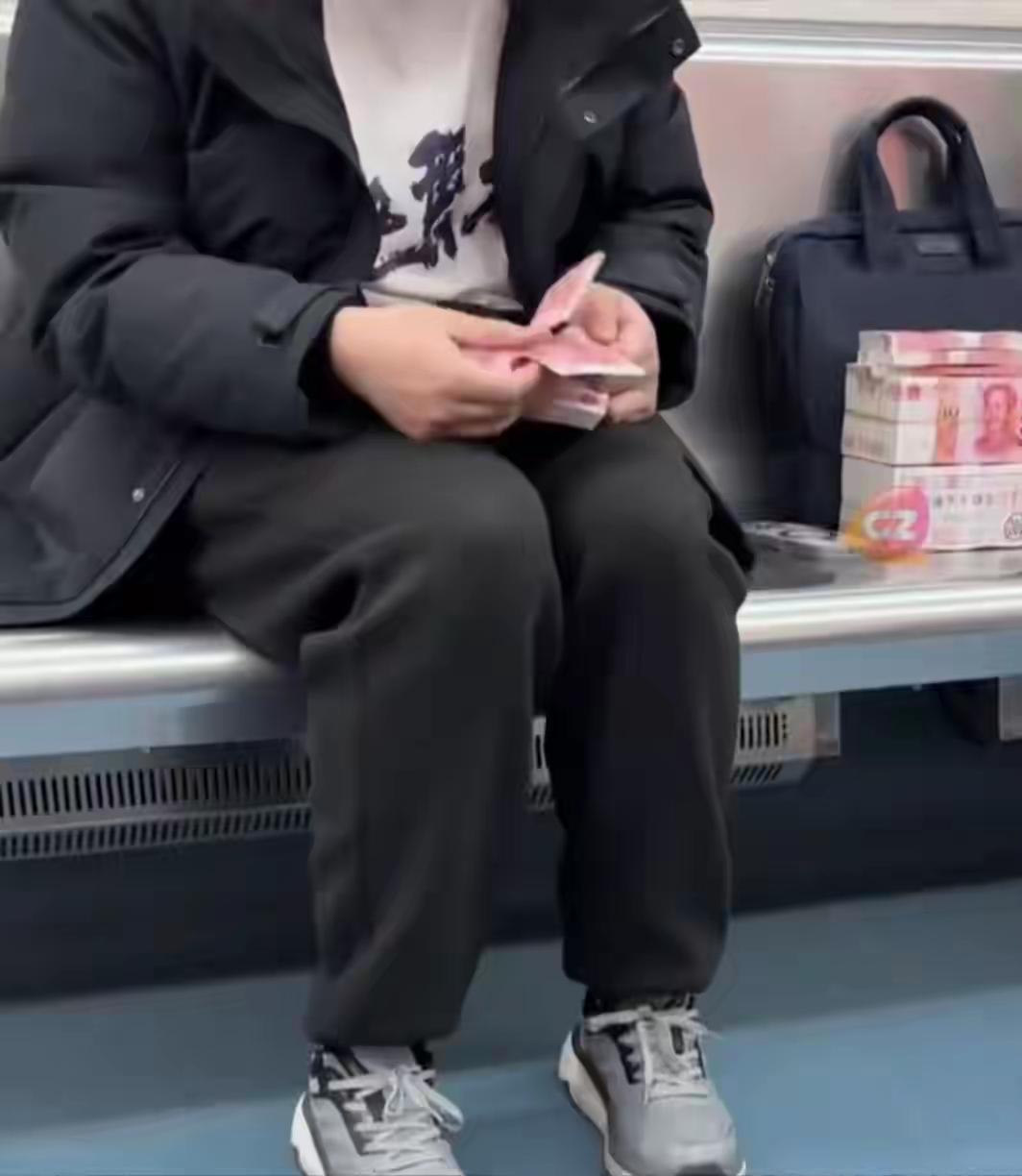 最近刷到个地铁名场面,一男子坐在座位上,手里攥着好几沓现金,当着满车厢人的面淡定