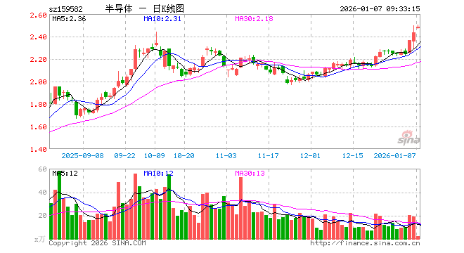 1月7日,半导体产业ETF(159582)开盘涨1.77%,报2.475元。半导体产业ETF(159582)重仓股方面,中微公司开盘涨3.10%,北方华创涨1.45%,寒武纪跌0.95%,中芯国际涨0.00%,海光信息涨0.00%,长川科技涨3.30%,华海清科涨2.41%,拓荆科技涨4.20%,南大光电涨6.89%,安集科技涨3.04%。