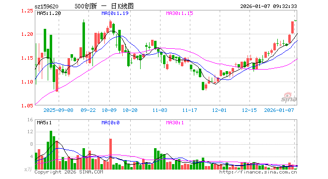 1月7日,500成长ETF(159620)开盘涨0.24%,报1.228元。500成长ETF(159620)重仓股方面,长川科技开盘涨3.30%,科沃斯涨0.01%,百济神州涨0.04%,广合科技涨0.04%,九号公司跌0.12%,晶晨股份涨0.01%,瑞芯微涨0.00%,恒玄科技涨0.00%,三美股份跌0.25%,中瓷电子涨0.05%。