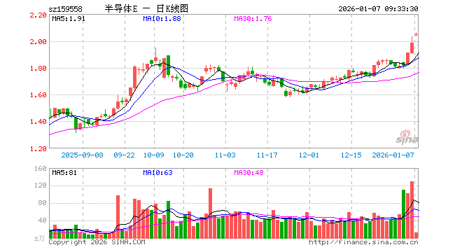 1月7日,半导体设备ETF易方达(159558)开盘涨2.87%,报2.040元。半导体设备ETF易方达(159558)重仓股方面,中微公司开盘涨3.10%,北方华创涨1.45%,长川科技涨3.30%,沪硅产业涨2.12%,华海清科涨2.41%,拓荆科技涨4.20%,南大光电涨6.89%,安集科技涨3.04%,中科飞测涨2.42%,芯源微涨3.78%。