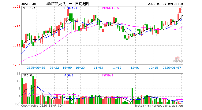 1月7日,A50ETF龙头(512240)开盘涨0.00%,报1.195元。A50ETF龙头(512240)重仓股方面,宁德时代开盘跌0.28%,贵州茅台涨0.34%,中国平安跌0.58%,招商银行涨0.05%,紫金矿业涨0.00%,美的集团涨0.19%,长江电力涨0.00%,立讯精密跌0.37%,恒瑞医药跌0.08%,比亚迪跌0.03%。