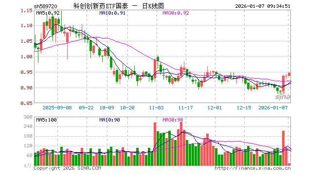 1月7日,科创创新药ETF国泰(589720)开盘跌0.11%,报0.936元。科创创新药ETF国泰(589720)重仓股方面,百济神州开盘涨0.04%,百利天恒涨1.52%,艾力斯跌0.51%,君实生物跌0.08%,泽璟制药跌0.55%,荣昌生物涨0.24%,博瑞医药涨0.38%,特宝生物跌1.02%,益方生物跌0.10%,迈威生物涨0.07%。