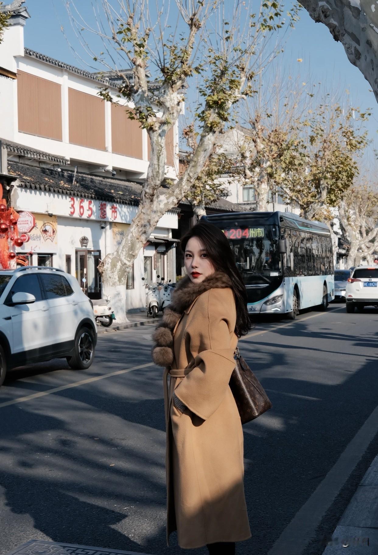 女人怎样穿搭,更显气质冬日暖阳下,漫步在古朴的街道,感受岁月静好。