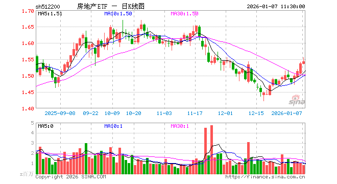 1月7日,截止午间收盘,房地产ETF(512200)涨0.46%,报1.543元,成交额1.32亿元。房地产ETF(512200)重仓股方面,保利发展截止午盘跌0.93%,万科A跌1.04%,张江高科涨2.40%,招商蛇口跌1.22%,海南机场跌0.39%,衢州发展涨0.00%,滨江集团跌0.58%,新城控股跌0.61%,万通发展涨0.96%,万业企业涨1.45%。