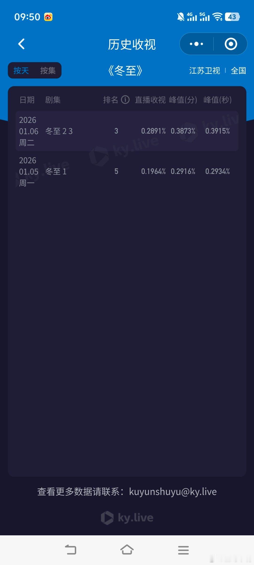 江苏卫视冬至黄景瑜 孙千《冬至》江苏卫视收视快报!酷云峰值0.3915,双集平均0.2891!对比上一部大结局0.16,拉升近0.13!好强!