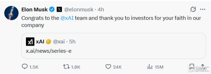 对此,马斯克在社交平台X上高调发文感谢投资方。