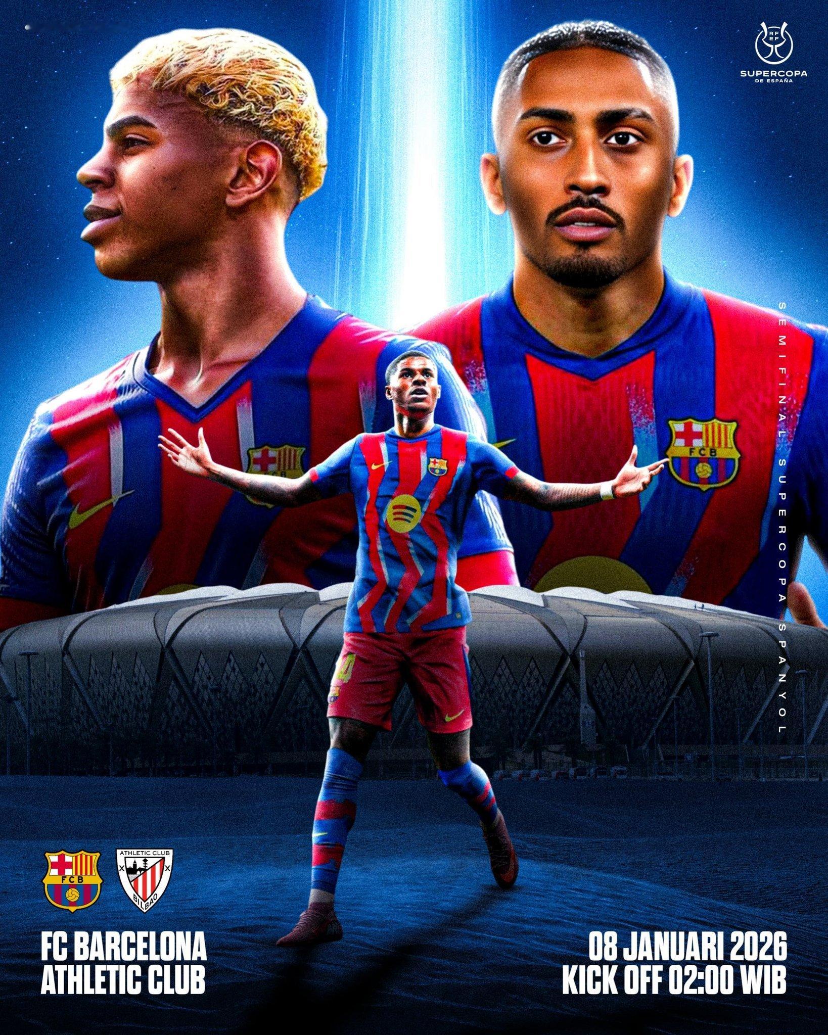 【比赛预告】西超杯半决赛1月8号凌晨3点巴塞罗那VS毕尔巴鄂竞技阿林马体育场直播平台:暂无比赛前瞻:新一年西超杯开战,面对老对手毕尔巴鄂竞技,巴萨能否再次晋级决赛,特尔施特根伤退,胡安-加西亚首发,新球衣亮相,今晚27点,我们不见不散。❤️💙巴萨西班牙超级杯巴萨vs毕尔巴鄂竞技