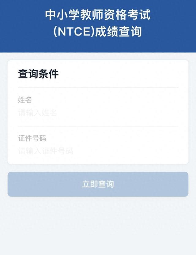 在国务院客户端小程序,中小学教师资格考试成绩查询页面,输入[姓名]和[证件号码],即可查结果。