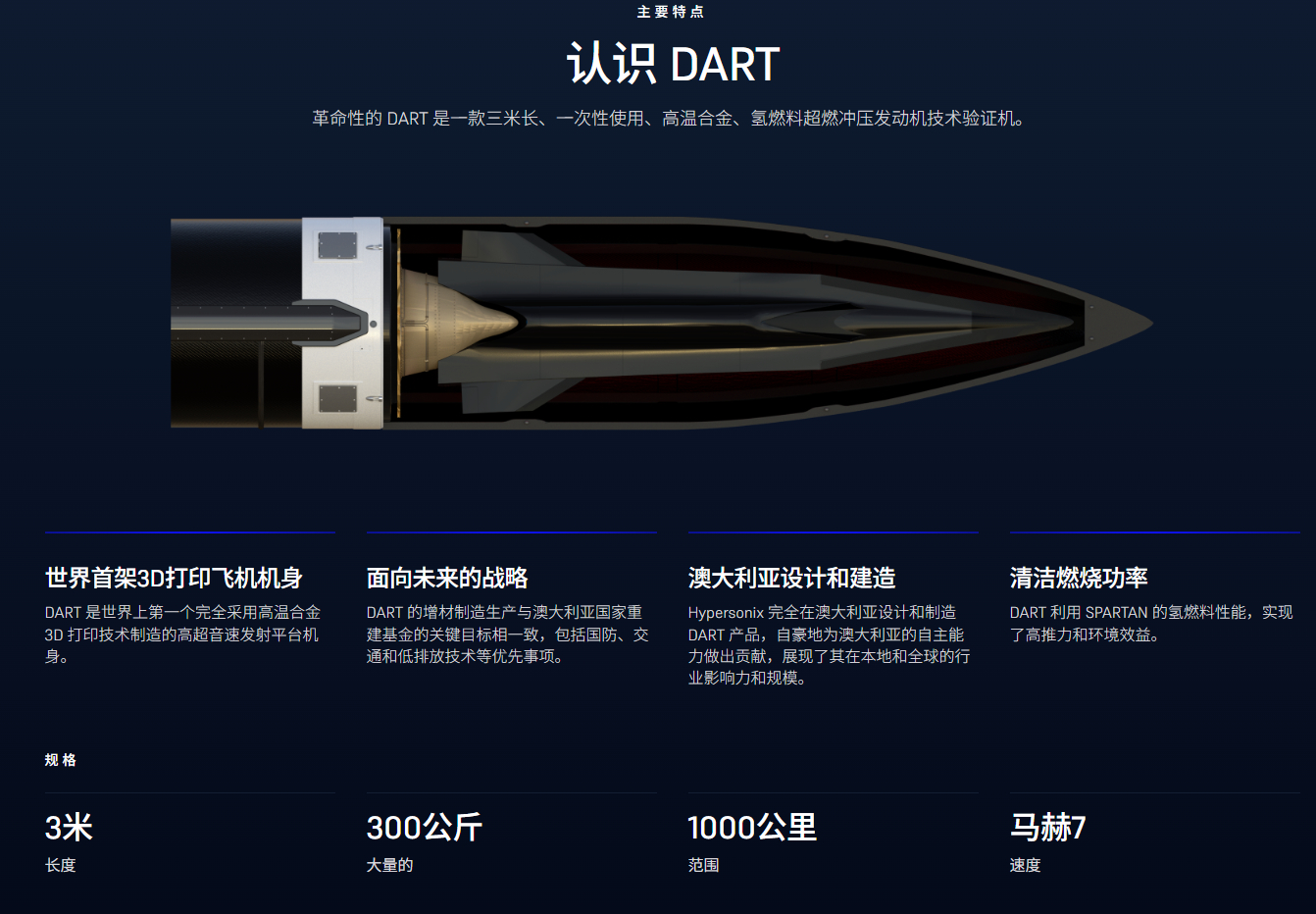 澳大利亚hypersonix 发射系统公司的 DART AE 高超音速飞行器即将前往美国进行首次飞行测试,这是一款用于测试可重复使用高超音速技术的飞行器,由高温材料采用3D打印技术制造,配装一台第五代SPARTAN零排放、氢燃料超燃冲压发动机;该项目由美国国防创新部 (DIU) 合作推进,属于全称是 “高超声速与高节奏空中测试能力”(HyCAT )计划的一部分。每天认识一件兵器烽火问鼎计划 首飞将使用火箭实验室公司的 “高超音速加速器亚轨道测试电子号”(HASTE)发射,HASTE 是 “电子号”火箭(Electron) 的亚轨道版本,后者是世界上发射频率最高的小型运载火箭。HASTE 包含了许多与“电子号”相同的创新技术,包括碳纤维复合材料结构和3D打印的火箭发动机,但其Kick Stage上面级经过了改装,专门用于高超音速技术测试,并将有效载荷能力提高到最高 700公斤 / 1,540磅。HASTE 能够以每秒超过 7.5公里的速度释放技术载荷,以测试吸气式、滑翔式和弹道式有效载荷,以及从太空返回地球大气的技术。