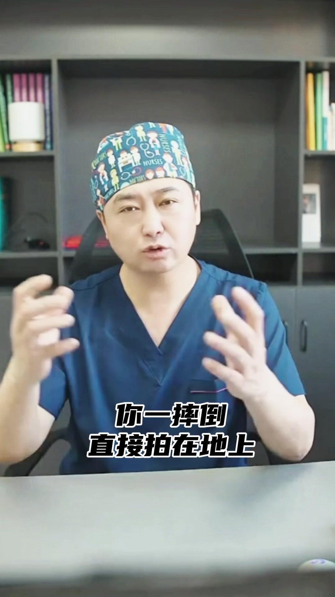 1️⃣摔倒后第一步:别立刻起身!先躺地上活动四肢,脚→膝盖→髋→手,无剧痛或活动受限可轻微动;若有剧痛/麻木/动不了,大概率骨折,保持静止,让别人别扶,赶紧打120。 2️⃣轻微磕碰可缓慢起身:翻身用肘/膝支撑坐起,再慢慢站起,全程动作轻缓。提醒家里老人:哪怕觉得没事,也要去医院检查,别因省钱麻烦耽误治疗。 3️⃣不同部位急救要点:手腕撑地肿疼畸形,用硬纸板/木板固定,冰袋冷敷;屁股着地警惕髋部/腰椎伤,平躺屈膝垫枕头;头部着地后,留意是否头晕恶心,警惕颅内出血。 ✅预防骨折关键:补钙+维生素D,多晒太阳;家里铺防滑垫,穿防滑鞋;老人避免单独外出,选白天;适度锻炼增强肌肉力量,降低摔倒风险。