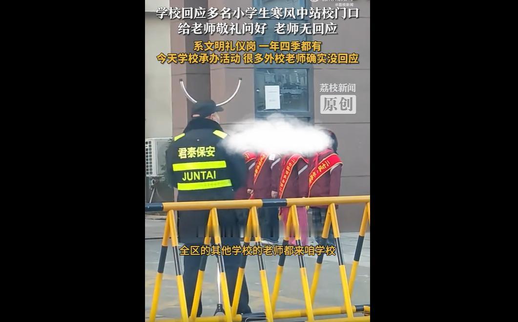 1 月 6 日,河南郑州某小学多名学生在寒风中站岗,向进校老师敬礼问好,部分老师未予回应。 这起 “寒风敬礼” 事件,虽然学校解释是常规礼仪,但在网友眼中,却折射出当前教育中形式大于内容的尴尬现状。 教育的温度不应被制度的僵硬所冻结。 “文明礼仪岗” 的初衷是好的,旨在培养孩子的礼貌与责任感。 但教育应以人为本,在零下的严寒中,让孩子长时间站立,这种 “为了仪式而仪式” 的坚持,未免显得有些不近人情。 教育的本质是关怀,当形式主义让孩子感到寒冷和疲惫时,礼仪教育的效果恐怕会大打折扣。 而师生之间的互动不应是一场 “独角戏”。 孩子在寒风中敬礼,是满怀真诚的表达;而老师的无动于衷,无论出于忙碌还是疏忽,客观上都造成了一种冷漠的观感。 礼仪是双向的奔赴,老师的一个点头、一个微笑,不仅是对孩子的回应,更是对这份纯真的呵护。 如果连最基本的互动都缺失了,那么这种礼仪教育在孩子心中,很容易变成一种机械的表演,而非内心的修养。 让教育回归温暖,让礼仪发自内心,才是我们真正需要的校园文明。