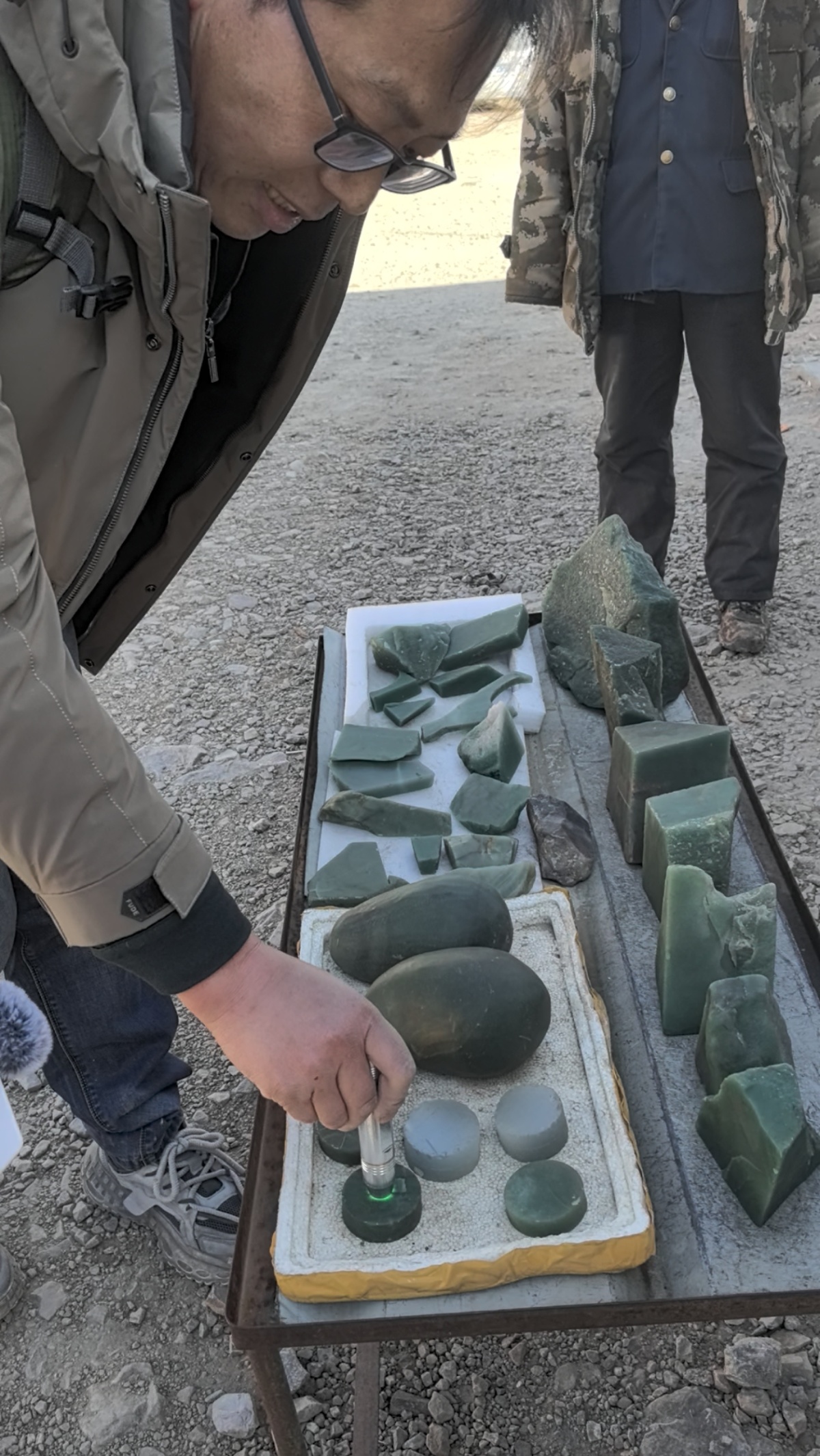 “这些矿渣因为含有少量玉石成分,所以呈现出通透的质感,但收藏价值不高。靠运气可能会碰上密玉原石,但品质不会太高。判断密玉的品质,首先要看颜色,其次看透光度,然后是体积大小。”邢青涛从专业角度解释,目前游客能捡到的这些地表矿渣,绝大多数达不到行业内加工雕刻的标准,“业里有个说法叫‘工不抵料’,意思就是把这些石头加工成饰品的费用,比石头本身的价值还高。不过话说回来,‘千金难买我喜欢’,对很多游客来说,探宝的乐趣和过程,可能比玉石本身更重要。”