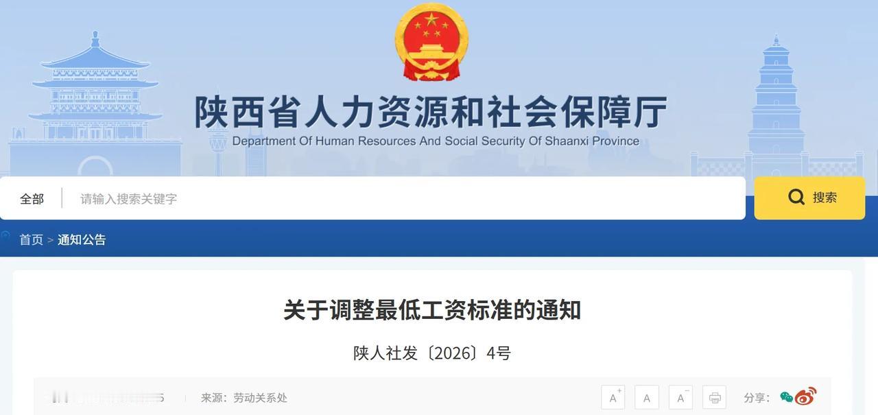 自2026年1月1日起,陕西将执行调整后的最低工资标准。 陕西省关于调整最低工资标准的通知如下: 月最低工资标准方面: 一类区为2376元; 二类区为2250元; 三类区为2140元。 非全日制用工的小时最低工资标准方面: 一类区为23元; 二类区为21.7元; 三类区为20.7元。