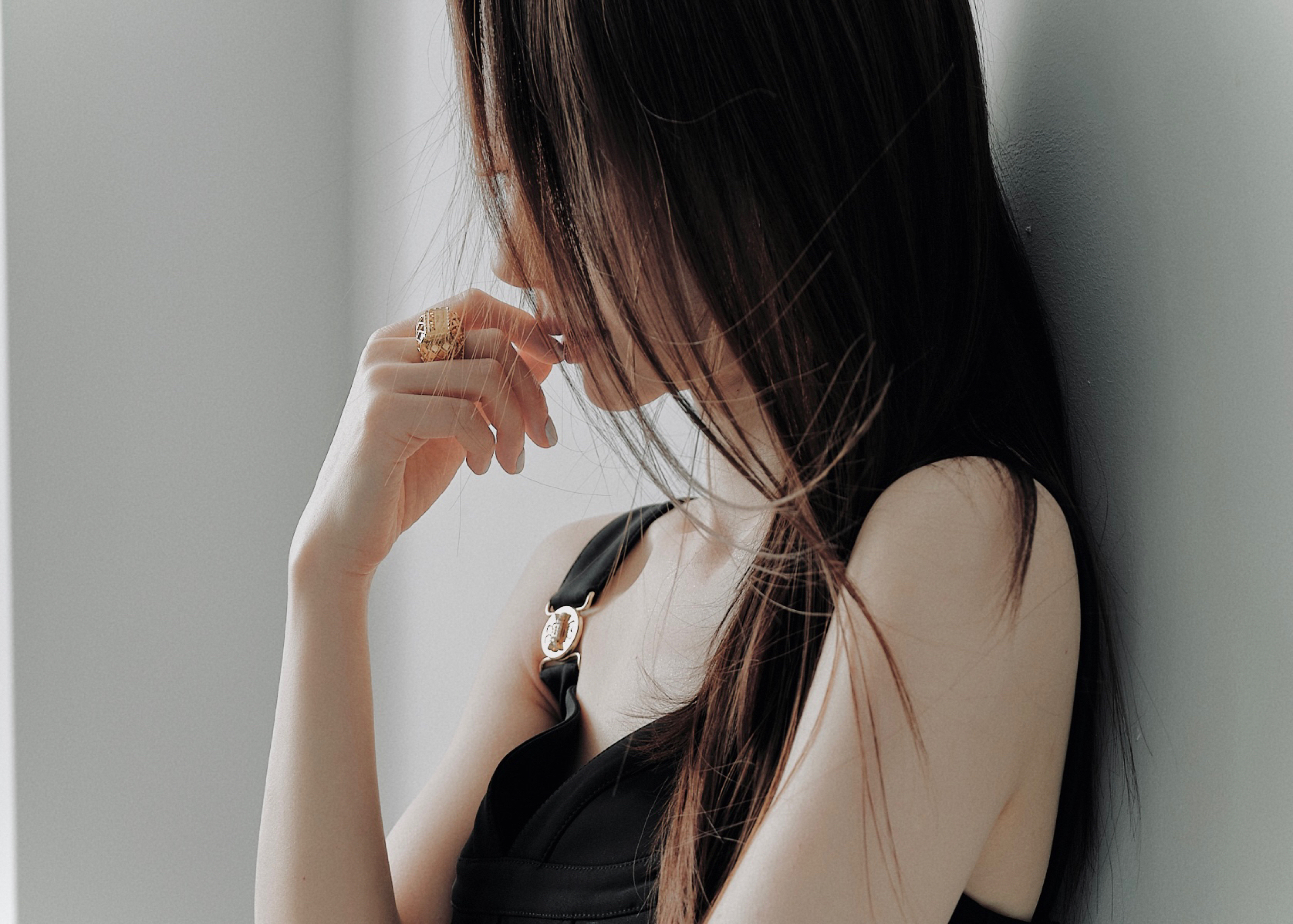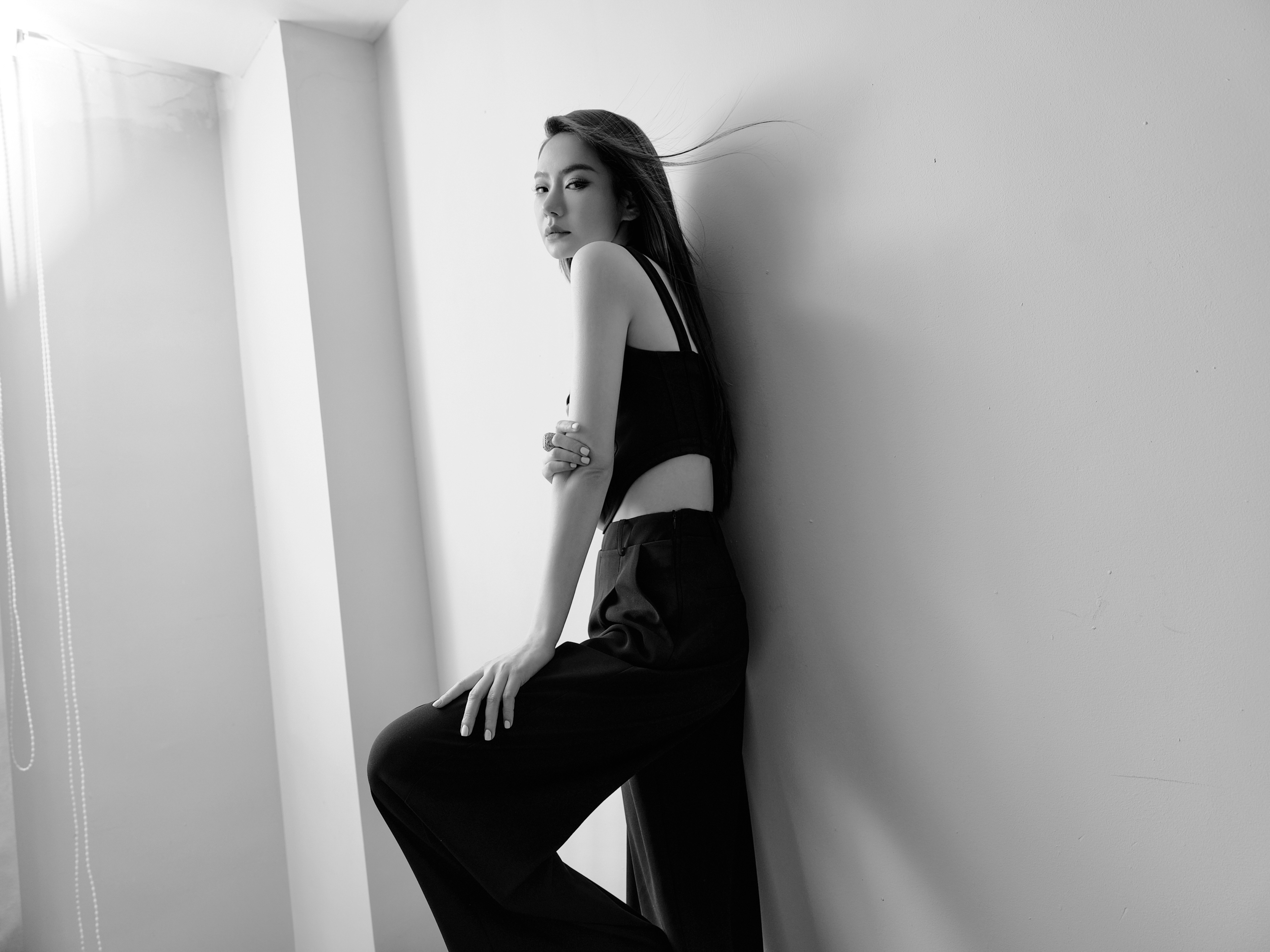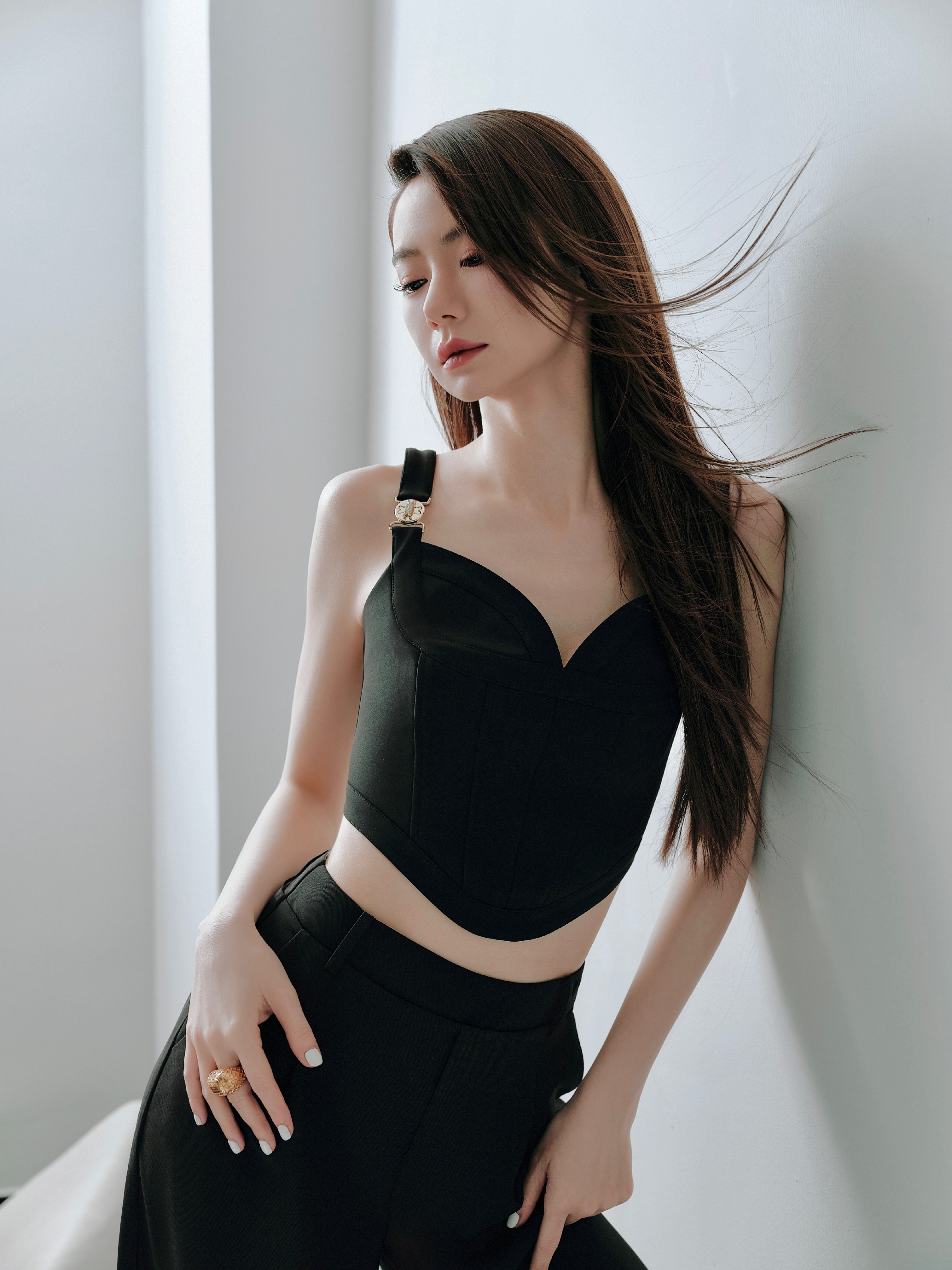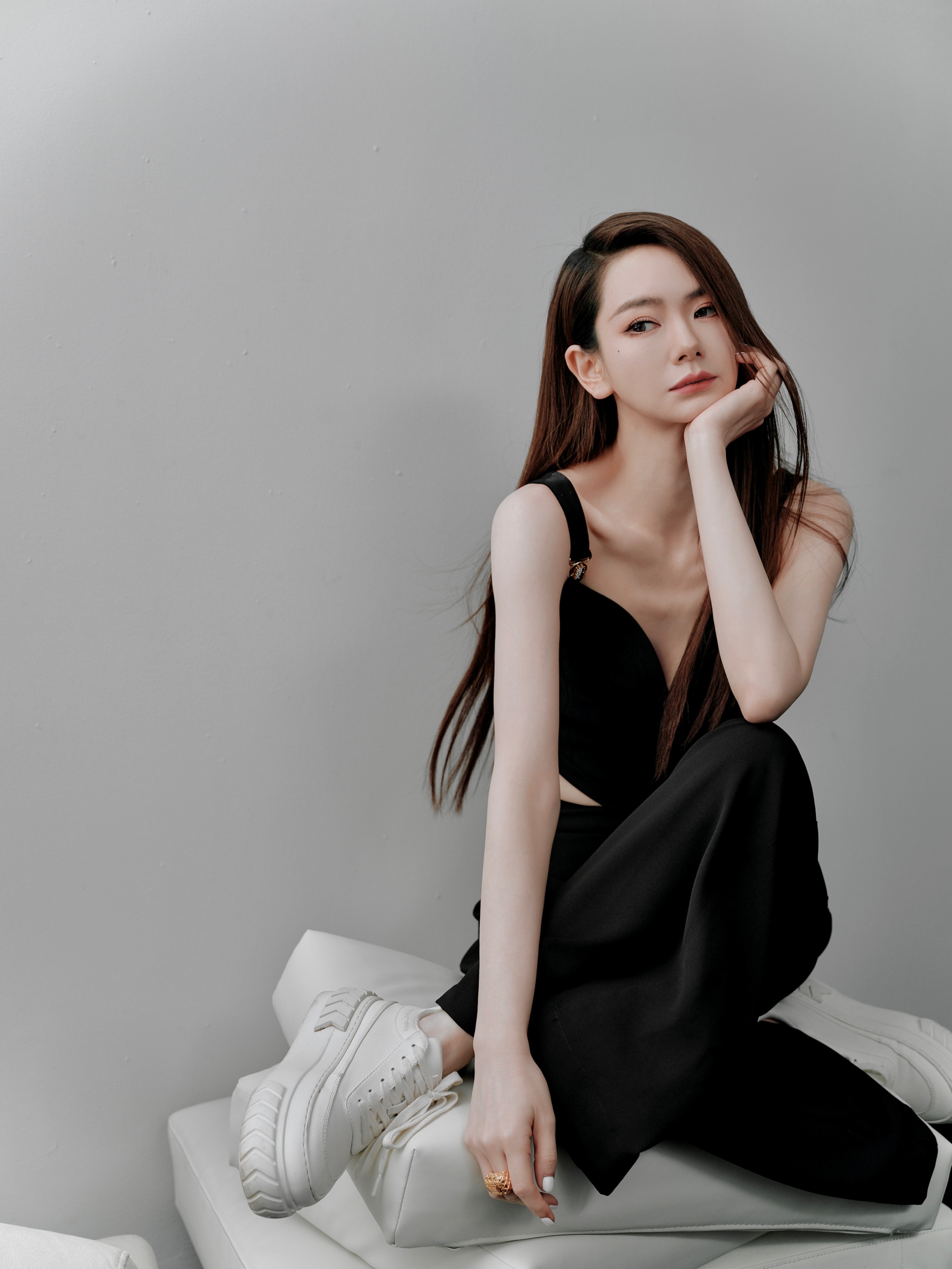 戚薇,长发黑衣,飒爽柔美。戚薇
