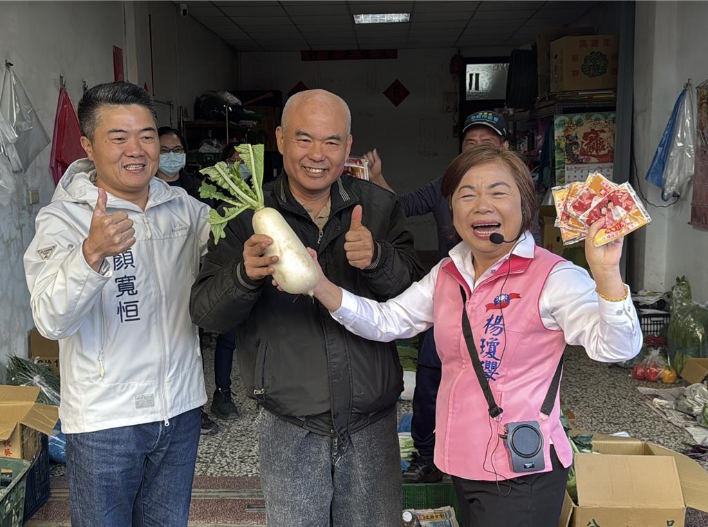 国民党2026台中市长选战,江启臣与杨琼璎争取台中市长初选出线;6日一早杨琼璎前往沙鹿市场拜票,蓝委颜宽恒到场力挺,颜宽恒说,杨琼璎委员从担任省议员至今,从政超过30年,对沙鹿的发展与建设贡献良多。